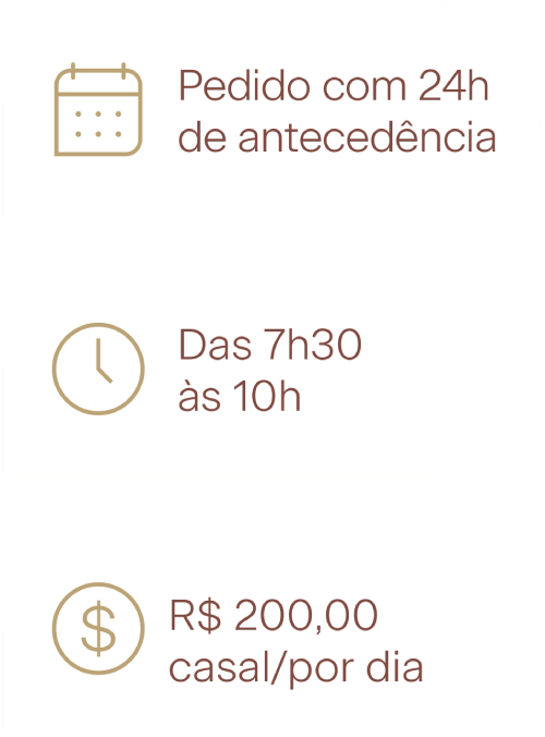 - Cardápio especial: repleto de delícias cuidadosamente selecionadas para tornar seu início de dia ainda mais agradável.