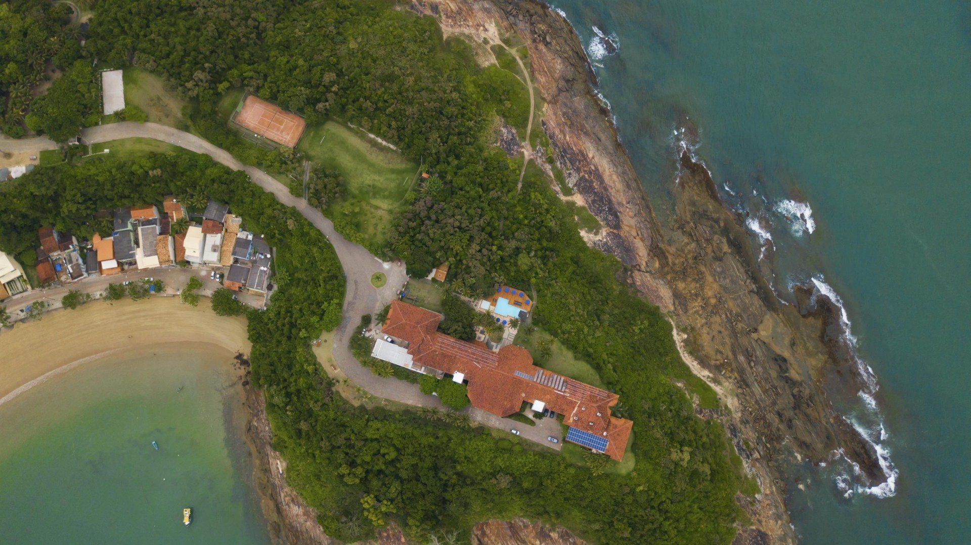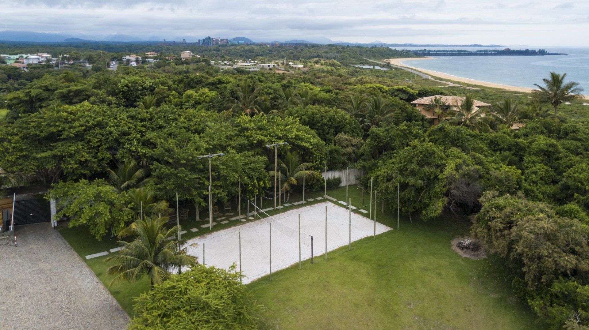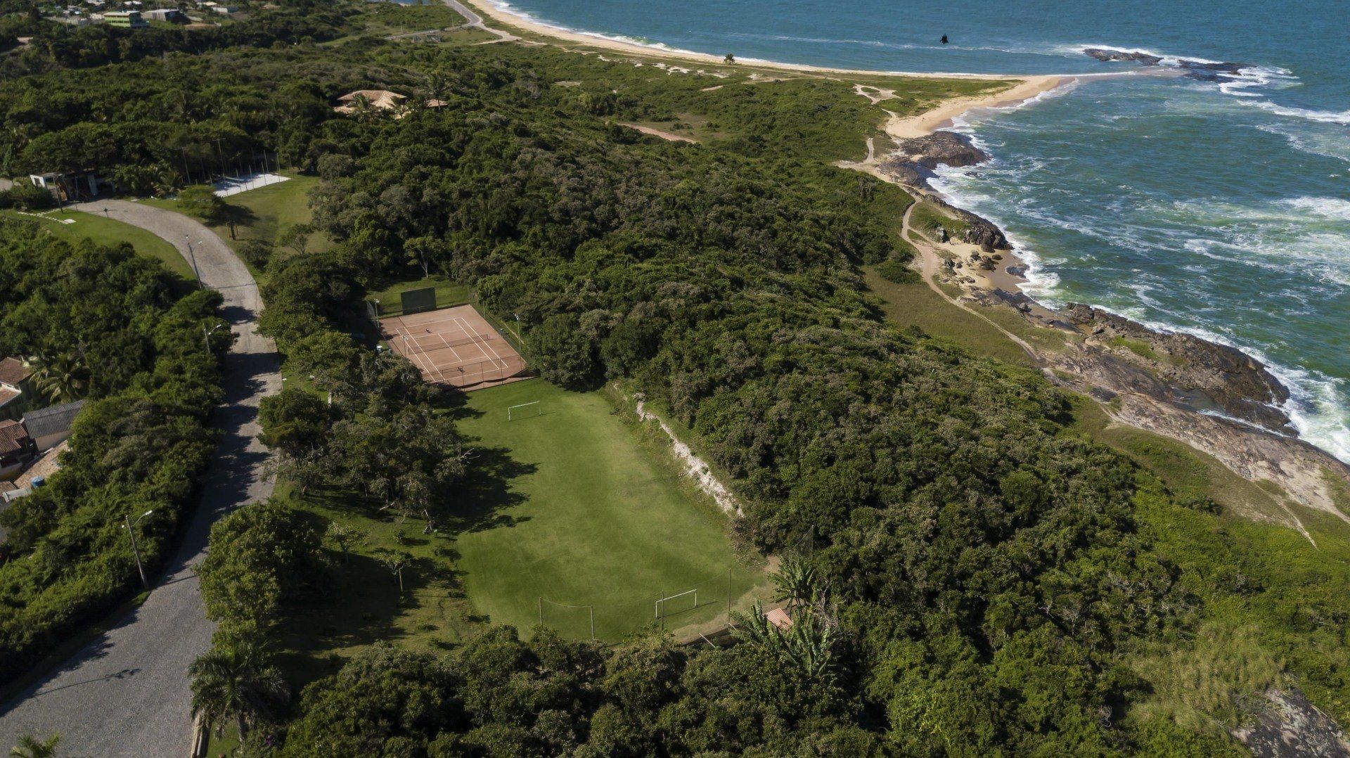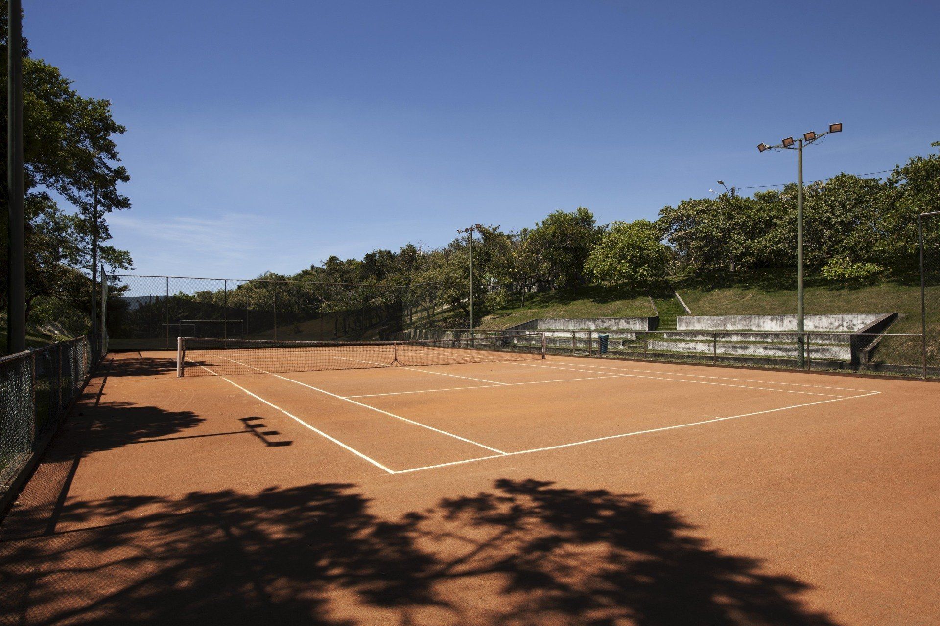 Possuímos quadra de tênis de saibro, campo de futebol society, quadra de vôlei de areia e quadra de beach tennis.
