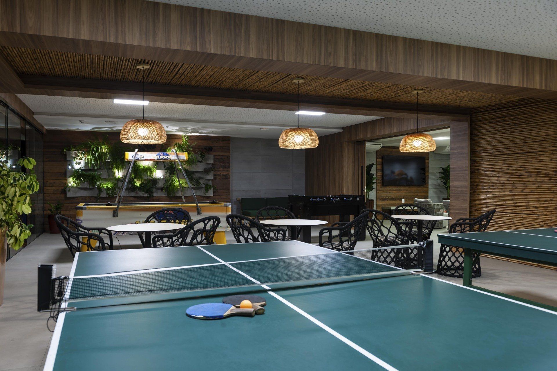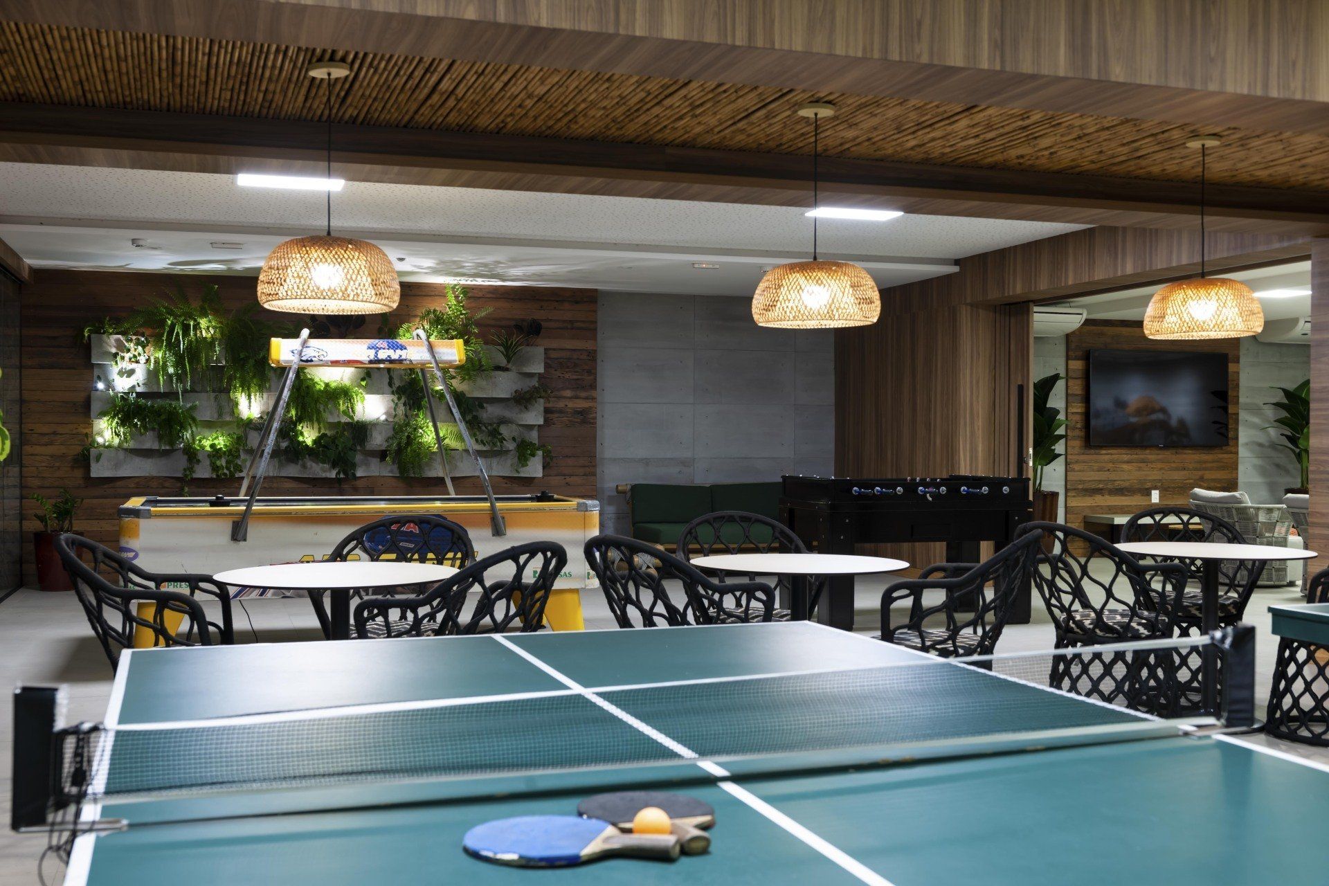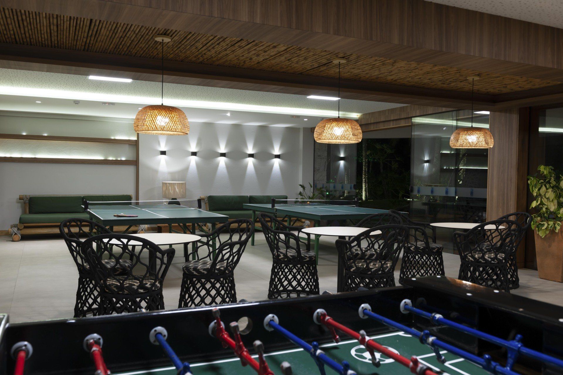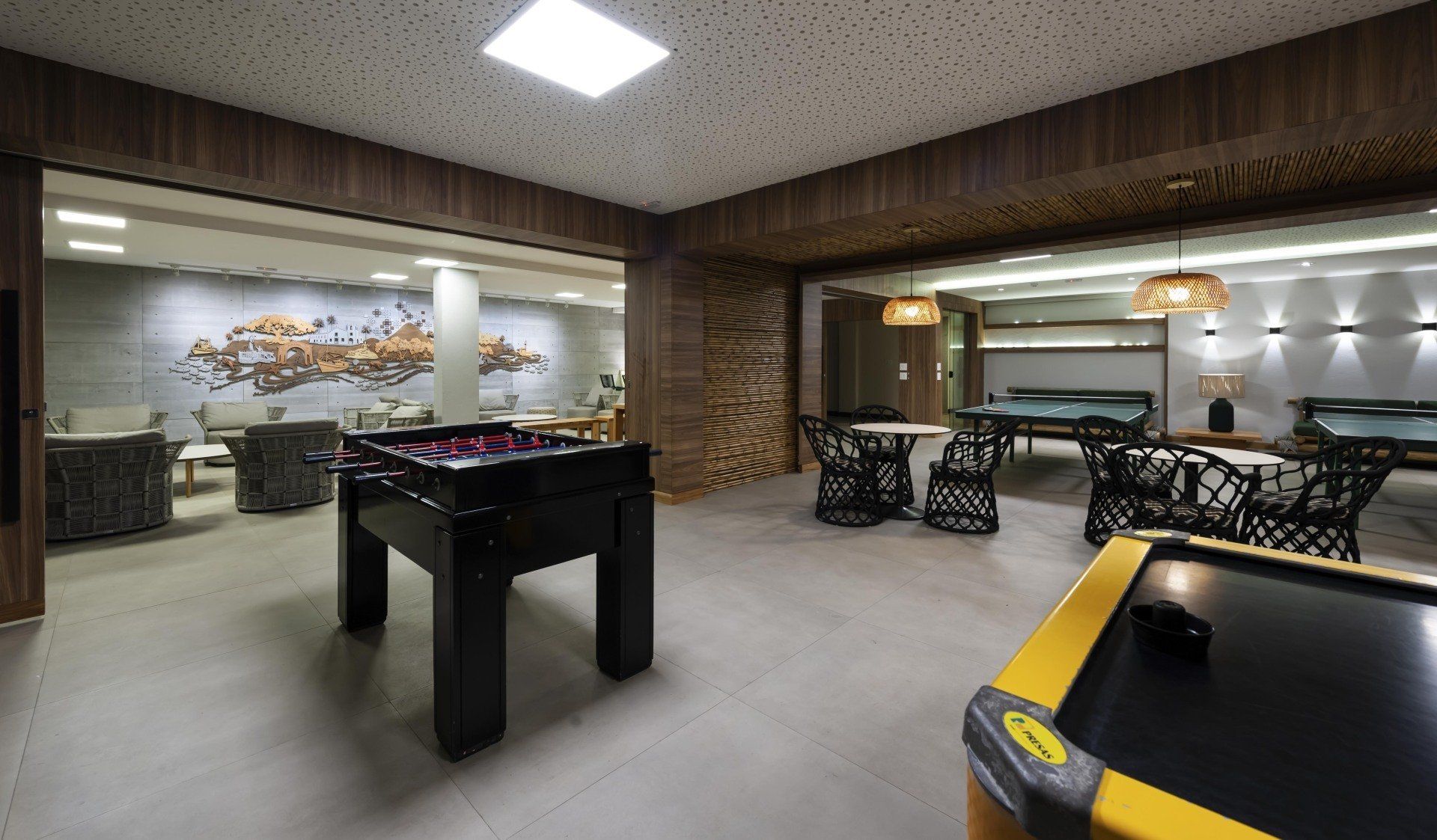 As crianças também podem aproveitar o playground, a piscina infantil, além da sala de jogos para brincar e se divertir.